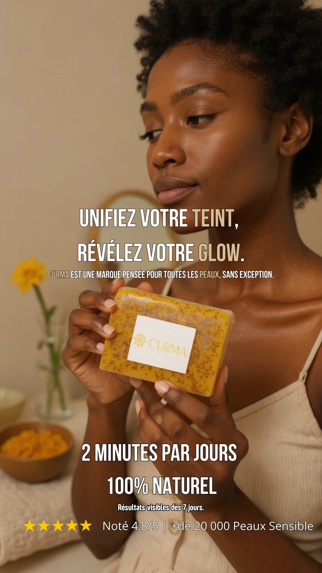 Peau noire, hyperpigmentation depuis l’adolescence... j’en ai essayé des produits. Mais Curma, c’est une dinguerie. En plus je trouve ça beau qu’une marque parle vraiment à notre peau sans complexe. Je ne m’en passe plus !